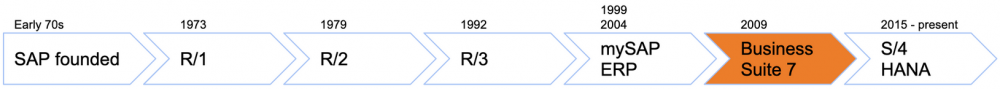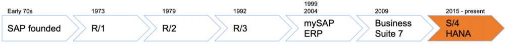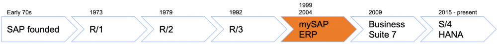 SAP has a large portfolio of applications. For main ERP system, SAP has 6 major version with significant improvement every decade as shown below.